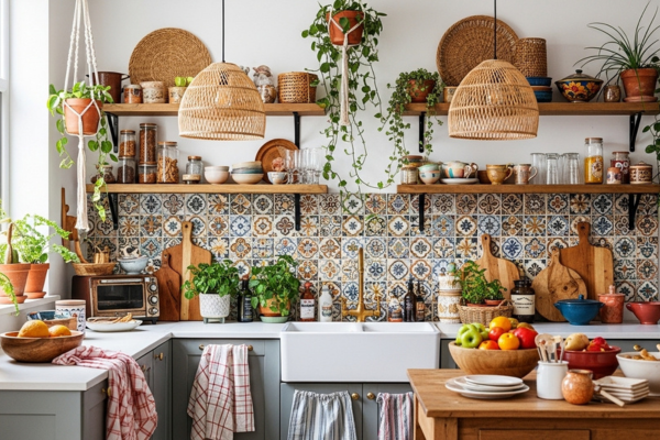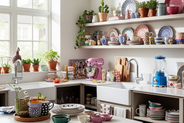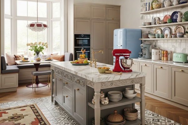 Essa filosofia estética se traduz na cozinha por meio do uso de cores intensas, estantes abertas com utensílios expostos, quadros e objetos decorativos que têm significado. Mais do que decoração, trata-se de uma afirmação de identidade.