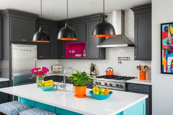 A decoração maximalista na cozinha se destaca por algumas características marcantes que tornam o ambiente único e memorável. O estilo desafia convenções estéticas tradicionais e convida à experimentação.