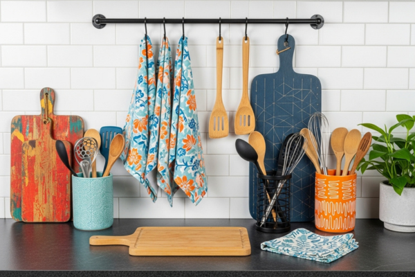 Objetos e utensílios devem estar acessíveis, mas também contribuir para a identidade visual do espaço. Para isso, explore soluções que combinem praticidade e estética.