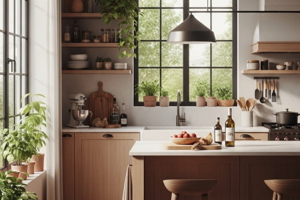 Cozinhas biofílicas e natureza integrada